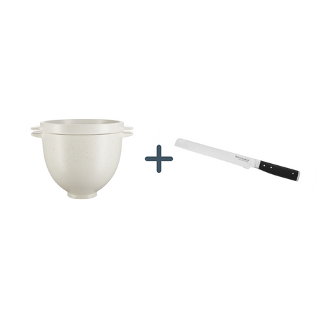 KitchenAid Brot-Backschüssel 5KSM2CB5BGS Grey Speckle mit KitchenAid Brotmesser KKFTR8BRWM